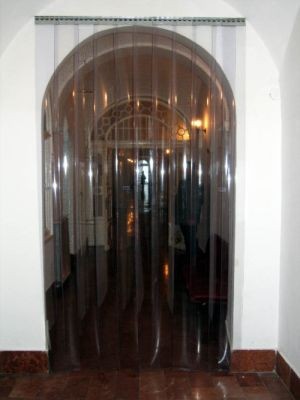 A bejárati ajtókra, hűtőkamrák ajtajaira, raktárak és boltterek közötti lezárásokra, raktárajtókra stb. szerelhető függönyök használata a fűtött és fűtetlen terek elkülöníthetőségével hatékony védelmet nyújt a helyiségek hőszigetelésében. A csak sima felülettel kapható szalagok normál (-5°C-ig alkalmazható) és fagyálló (-40°C-ig alkalmazható) kivitelben, átlátszó és színes változatban készülnek, szélességük 100; 150 és 200 mm; vastagságuk 1,2 és 2 mm lehet.