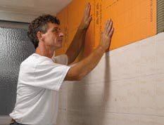 A víz- és hőszigetelésként is szolgáló Schlüter-Kerdi-Board építőlemez közvetlenül burkolható felületet ad, és a csempeburkolattal együtt többrétegű vízszigetelést alkot.
