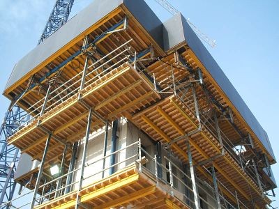 A szerkezetépítő Fernwave Ireland Ltd – a részletesen kidolgozott zsalutervek alapján – a Doka hatékony megoldása mellett döntött. A szűkös építési terület csupán egy toronydaru használatát tette lehetővé, így kizárólag a zsaluzatok teljesen darufüggetlen áthelyezése jöhetett csak szóba. „Az SKE 50 önkúszó zsaluzatok alkalmazása a lépcsőházi magoknál, valamint a TLS darufüggetlen asztaláthelyező rendszer használata tette lehetővé, hogy a két kulcsfontosságú kihívásnak (a szűk darukapacitásnak és a hetenkénti födémbetonozási ciklusoknak) sikeresen meg tudjunk felelni” – vallja Ronan McHugh, a Fernwave projektmenedzsere. A zsaluzási fázisok maximális biztonságáról a felső négy szint köré helyezett Xclimb 60 védőpajzs gondoskodott.