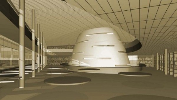 Könyvtár, konferenciaterem, kutatóhelyiségek, kiállítótér és kávézó-étterem is lesz a Dél-Dunántúli Regionális Könyvtár és Tudásközpont épületében. Látványképek és film a Pécs2010 EKF honlapjáról.