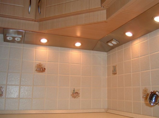 Az angyalföldi panellakásban a konyhai munkafelületek megvilágítására és elektromos árammal történő ellátására praktikus és esztétikus megoldást választottunk: a felsőszekrény alatt elhelyezett kompakt elektromos ellátórendszert. Ez olyan, háromszög keresztmetszetű elemekből álló sorozat, amely gyengeáramú (12 V-os) világítótesteket és erősáramú (220 V-os) dugaljakat is tartalmaz. Az elemek speciális csatlakozókkal illeszthetők össze, így hézagmentes, homogén, esztétikus felület kapható, de a legnagyobb előnye, hogy nem igényel falon belüli vezetékezést, így a panelkonyhákban remek megoldást nyújtanak.