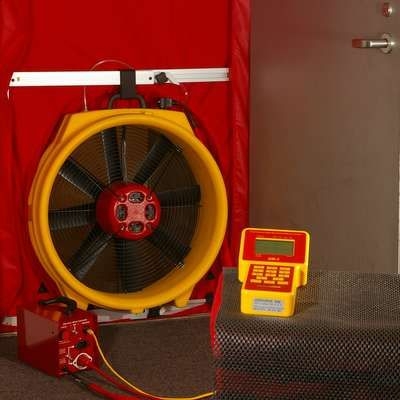 A BlowerDoor készülék az épület külső és belső tere között akkora nyomáskülönbséget hoz létre, ami természetes körülmények között 30 km/h szélsebességnél alakul ki, és azt méri, hogy a létrehozott légritka belső térbe óránként mennyi levegő áramlik be.