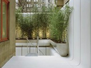 David Giovannitti belvárosi kertjét fehér DuPont Corian (Glacier White színű) anyagba "öltöztette”, így az fényt ver vissza a pinceszintben elhelyezkedő, nagyterületű Upper-East Side-i lakásba, melyhez a kert tartozik. A kertet fiatalos, könnyen mozgatható bútor- és kiegészítő sorozattal szerelte fel – a rekamiétól kezdve a mászókötélen át egy jegesvödörig – így egyszerre vált gyönyörűvé, funkcionálissá és alkalmazkodik a különböző igényekhez és hangulatokhoz.