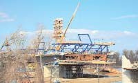 A szegedi extradosed (azaz a vasbeton híd a keresztmetszeten kívül ferde kábelekkel feszített) mederhíd kereszttartóval merevített, trapézlemez bordájú, háromkamrás hídszerkezetét 5 méter hosszú, 25 tonnás egységekben szerelték össze és emelték a zsaluzókocsikba. Ez a Doka számos helyen már alkalmazott szabadon betonozó zsaluzókocsijának egyedi alkalmazását kívánta.