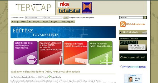 Belépés az oldalra: http://tervlap.hu/tovabbkepzes
