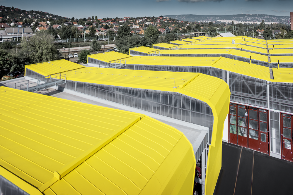 Az új budafoki kocsiszín épületének extravagáns „közlekedési sárga” színét a budapesti villamosok színe ihlette. Mindenki mást lát az 50 új villamosnak helyet adó épület különleges formájában: egyesek szerint egymás mellett parkoló villamosokra emlékeztetnek. Az épület tetőjét különleges sárga színű PREFA alumíniumburkolat fedi.