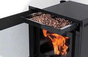 - kényelmesen tölthető pellet tűztérbetét (a kandalló működés közben, segédeszköz nélkül is feltölthető pellettel);