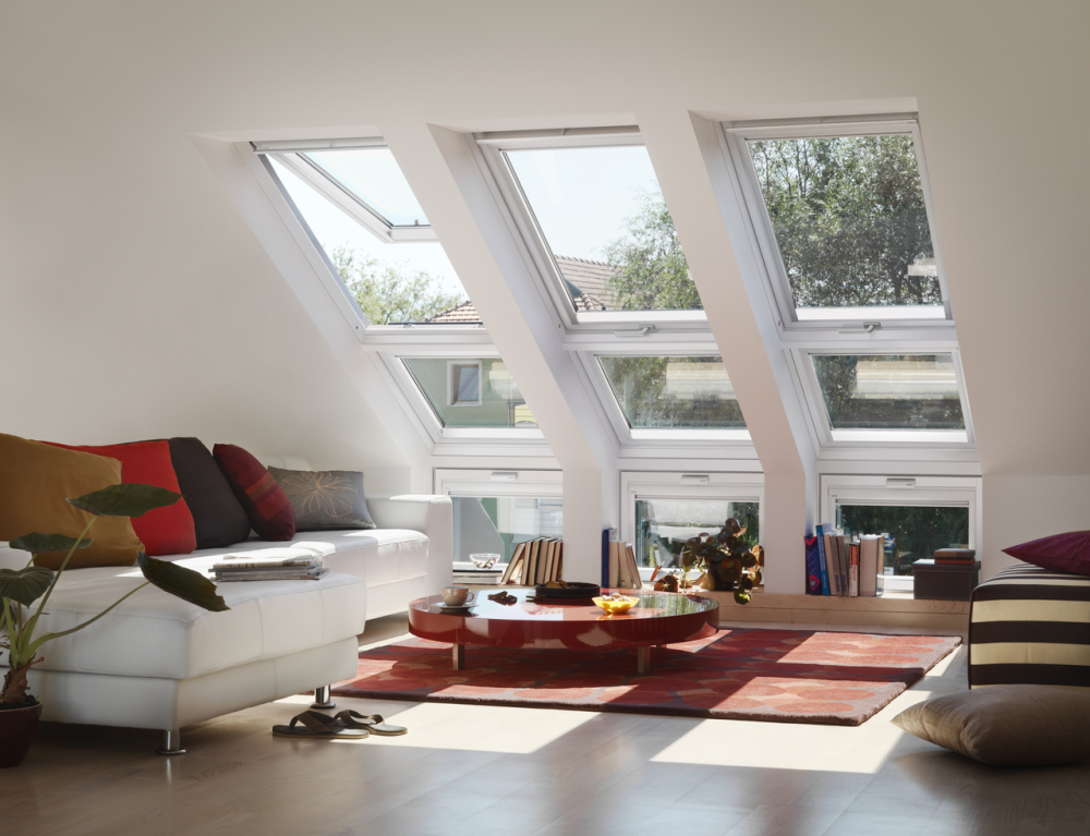 A tetőtéri ablak és térdfalablak együttese fontos dizájn elem, a beltérre gyakorolt hatásain túlmenően az épület külső megjelenését, formavilágát is meghatározhatja. A kreatív tervezői képzelet számára új utakat jelöl ki.