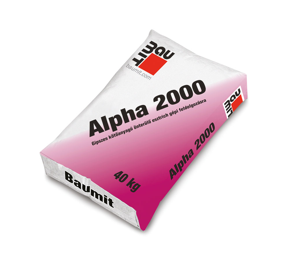 A Baumit Alpha 2000 előkevert, gipsz kötőanyagú esztrich, amely csúsztatott-, úsztatott-, illetve kötőesztrich készítésére egyaránt alkalmas. A termék használata esetén az aljzatkiegyenlítő réteg elhagyható, önterülő tulajdonsága miatt a munkavégzés egyszerűbbé és gyorsabbá válik.