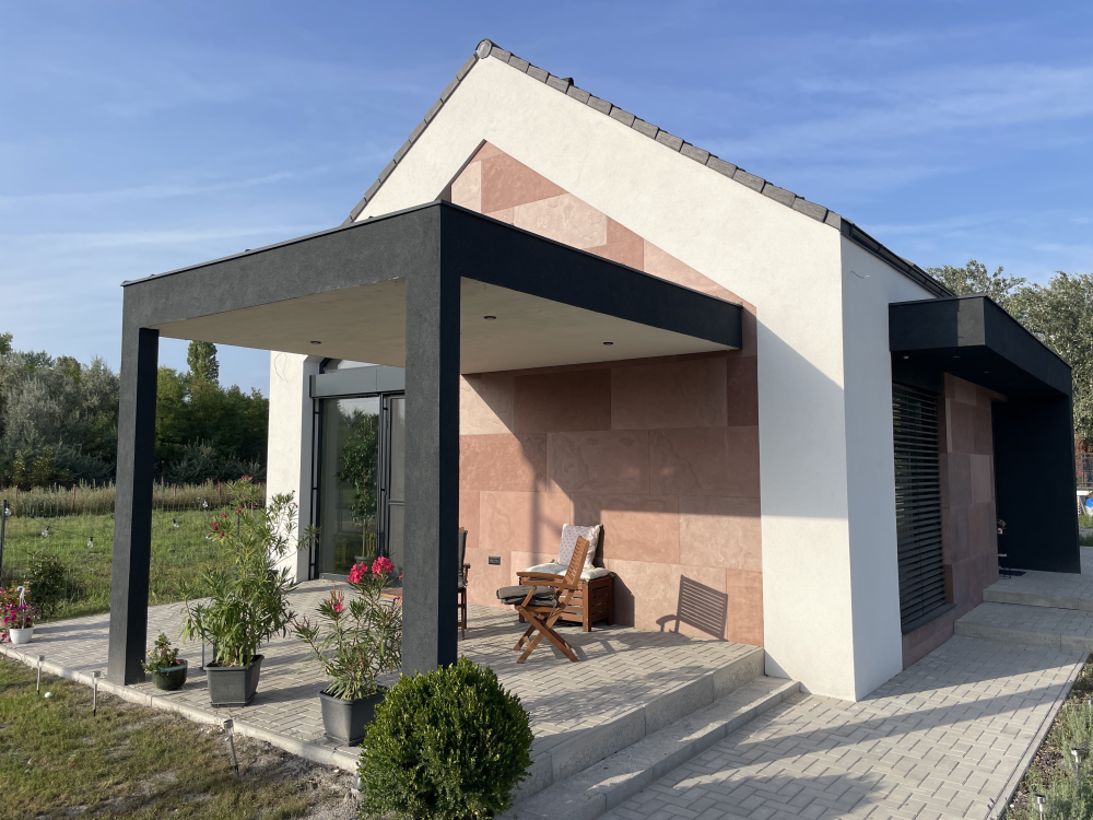 A gárdonyi mintaház modern, letisztult épülettömegéhez a legmagasabb műszaki paraméterek társultak. A már 120 és 150 m2-es verzióban is elérhető ház alaprajza tökéletesen illeszkedik a modern családok életviteléhez: a ház intimebb részeitől leválasztott, hatalmas belmagasságú nappali ideális színtere a mindennapoknak és az összejöveteleknek.