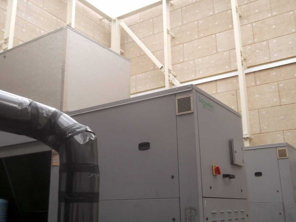 A kibővült számítógéppark működéséhez szükséges gépészet zajhatásának hangelnyelésről, hangcsillapításról a falak belső borításaként beépített Tektalan 037 A2 típusú építőlemezek gondoskodnak.