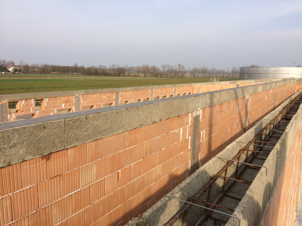 2019 nyarán kereste meg cégünket egy ismert helyi kivitelező azzal a kéréssel, hogy a kivitelezésében készülő sertéshízlaldához készítsünk neki a járatos mérettől eltérő, magasabb elemet, hogy az építmény méretét figyelembe véve nagyobb, erősebb koszorút tudjon készíteni. A gyárral egyeztetve – figyelembe véve a lapok gyártási méretét – készítettünk a 300 mm-es falvastagságra egy 300 mm széles, 310 mm magas U zsalut, amelyben az 50 mm vastag Heratekta szigetelőlap betétet is kicseréltük 25 mm vastag Heraklith lapra, hogy ezzel is növeljük a vasbeton koszorú keresztmetszetét.
