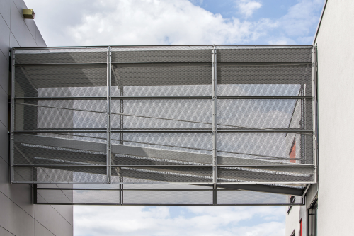 A Bundesliga első osztályában szép eredményeket elérő FC Ingolstadt 04 nemcsak sokat ígérő tehetséggondozó munkájára lehet büszke, de a csapatoknak helyet adó, 15 800 férőhelyes Audi sportpark legújabb fejlesztésével is hírnévre tett szert. Az épületegyüttes ugyanis egy átjáróhíddal egészült ki, amihez Mevaco Rombusz 50×22×4-es, utólag tűzihorganyzott, 2 mm vastag expandált acéllemezt használtak.