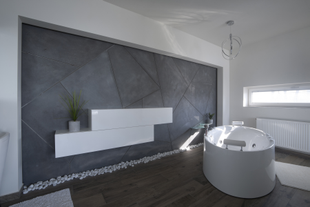 A lakás más-más helyiségeiben felépített felületeinek különbözősége képviseli mind a StyleCrete® által biztosított egyediséget, mind pedig az egyéni elképzelések és igények megvalósítását.