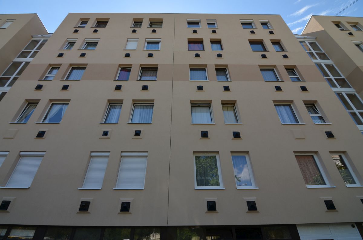 A képen szereplő négyemeletes gödöllői panel társasház egy évtizede már a homlokzati hőszigetelés mellett döntött. Sajnos az évek múlásával kiderült, hogy nem elég hatékony a meglévő szigetelés vastagsága, és előjöttek a kivitelezési hibák is: a nyílászárók körül, a szakszerűtlenül a redőnyökre rárakott hőszigetelésnél beázás keletkezett, a vakolat néhány helyen elvált, színe megfakult. A társasház úgy döntött, hogy a felújítás során az addigi 5 cm vastag szigetelést megduplázza, és ragaszkodik a gyártói rendszergaranciához, ezért a Baumit „hőszigetelés a hőszigetelésre rendszer” anyagait és technológiáját választotta, a kivitelezéssel pedig a Creat Event Kft.-t bízta meg.