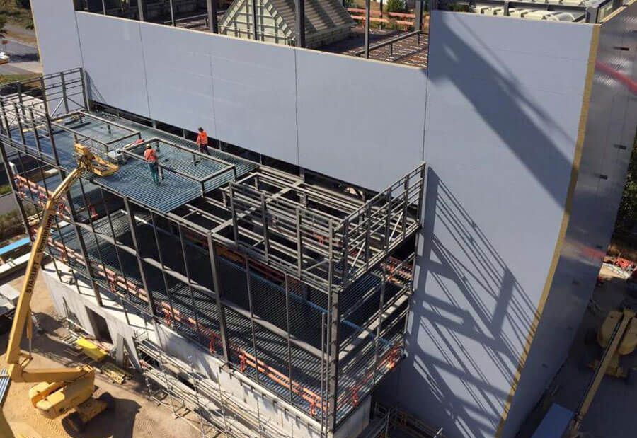 Az új nyugati bejáratnál – az épület belsejében - az MT 60-as állványtornyok segítségével támasztották meg a 630 négyzetméteres, helyszíni betonozással készült, 25 és 50 centiméter közötti vastagságú, 9,30 méter magasságig nyúló födémet. Az állványtornyok összeszerelése a talajon, felállításuk pedig daruval történt. A kizsaluzáskor az állványok külön munkaszintet kaptak. A helyenként 11 méter magasságban kinyúló födémet pedig kívülről MEP állványok tartották.