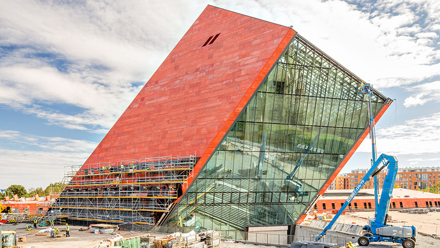 A lengyel kikötőváros különleges épülettel tiszteleg a múlt előtt, melyhez a tervekből különleges formák és látványos terek születtek úgy, hogy a magas tűzállósági, hang- és hőszigetelési szabványoknak is megfeleltek. A belső terek kialakítása során a kihívást azépület különleges szerkezete, a nagy magasságú függőleges és ferde falak jelentették. „A Múzeum belső tereiben végzett munka a kivitelező számára egyértelműen a szaktudás tesztje volt. A projekttel szembeni sokrétű követelményrendszer, a terek roppant nagysága, valamint a gipszkarton általánostól eltérő alkalmazása eredményezte azt, hogy itt “Forma 1-es” feladattal álltunk szemben” – összegezte a munkát Zdzislaw Leszkowski, a Múzeum belső tereit kialakító Renova vállalat tulajdonosa. A feladatok összetettségét mutatja, hogy a falak rögzítésétől a tárlók súlyán keresztül egészen a néhol 7 méter magasságú falakig vagy a hangszigetelésig, mennyi feltételnek kellett megfelelni. És nem utolsósorban, úgy kellett a gipszkarton terméket kiválasztani, hogy a falak jól bírják a mechanikai sérüléseket, és a múzeum évi több százezer látogatója se jelentsen problémát.