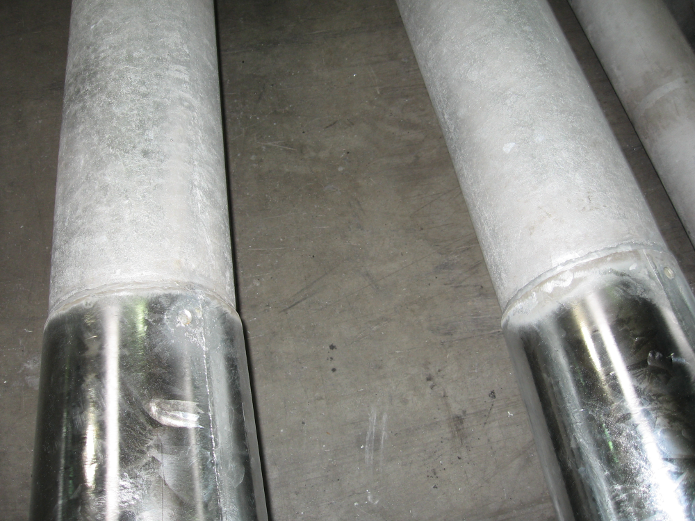 Frissen bevont csőoszlopok tisztítása a horganyfürdő felett