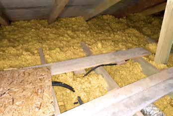 A padlástérben elhelyezett csőrengeteg biztosítja ugyan a várhatóan nulla energiájú ház optimális működését, ám gyakorlatilag lehetetlenné teszi a padlásfödém szigetelését. Pedig az is elengedhetetlen; különben fűthet-hűthet, hőcserélhet a ház, ha utána a födém átengedi az összes hasznos energiát, és a teljesítmény fele elveszett. Mit lehet tenni, ha olyan épületrészeket kell szigetelni, amelyek nehezen elérhetőek a – például éppen a gépészeti berendezések miatt kialakuló – szabálytalan terek és üregek miatt? A megoldás ilyen esetekben a befújható ásványgyapot.