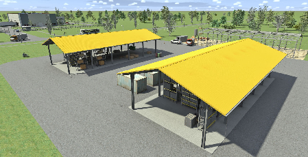 Fedett szín – egyszerű szerkezetű, acélvázas, csak trapézlemez tetőburkolattal fedett, oldalán nyitott csarnok