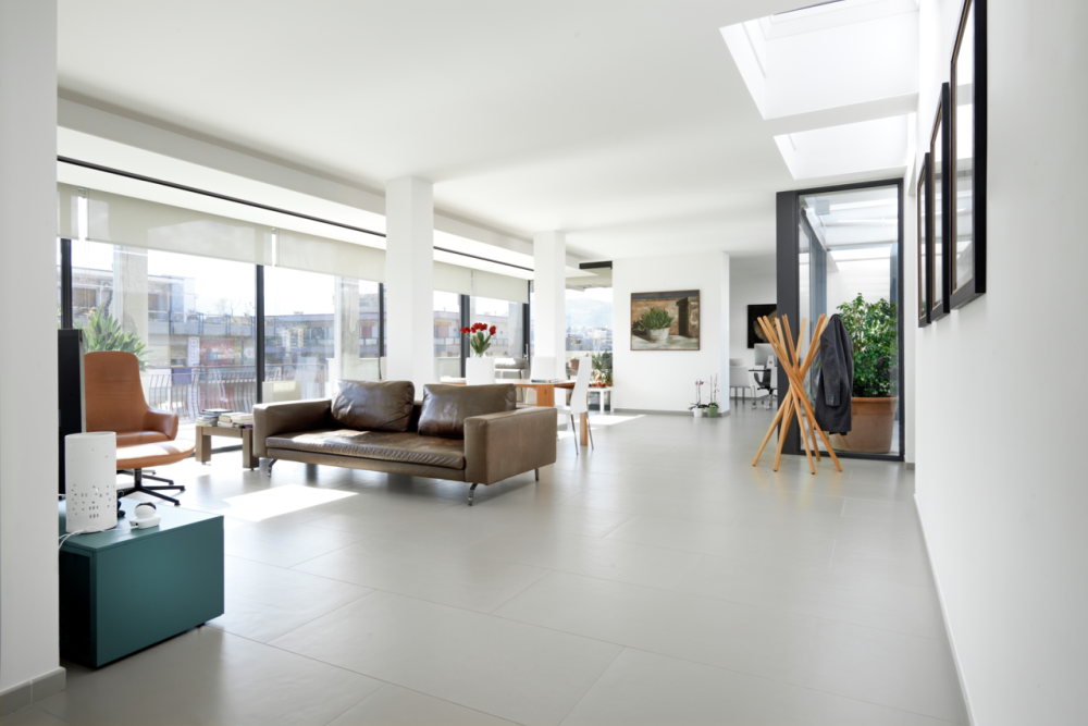 A legfelső emeleten elhelyezett irodaterületek egyedi lehetőségeket nyújtanak a tervezőknek. Ez az a tér, ahol a tető érintkezik a belső térrel. Itt nemcsak homlokzati ablakok alkalmazhatók a bevilágítás és szellőztetés tervezésekor, hanem felülvilágítók is, ezáltal lehetőség van a tető részleges vagy teljes megnyitására az égbolt felé. Az irodaépületek minőségét nemcsak a korszerű anyagok használata emeli, hanem az is, hogy a tervező, belsőépítész mekkora szerepet ad a természetes fénynek az irodaépületen belül.