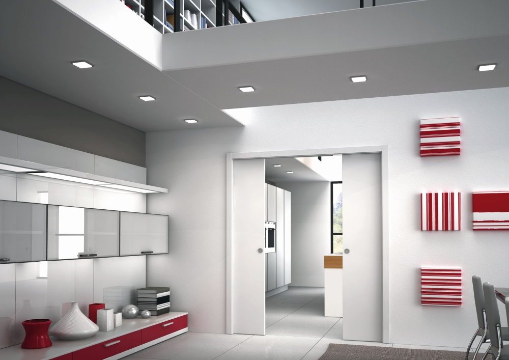Íves belső falak alkalmazásával dinamikus belső terek hozhatók létre, azonban az íves falakba nehéz hagyományos módon elegáns ajtókat építeni. Erre is lehetőséget kínálnak a vakolt vagy gipszkarton falakba építhető Eclisse tolóajtók, melyek a funkcionalitás kárára kötött kompromisszumok nélküli, a rendelkezésre álló helyet észszerűen kihasználó látványos megoldásokat kínálnak.
