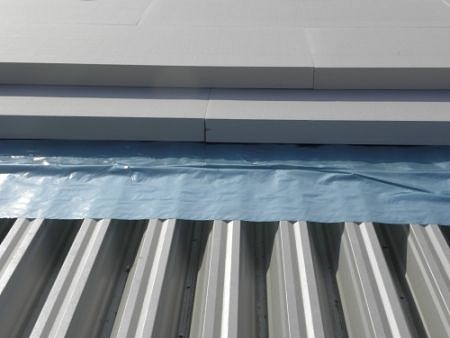 14 cm vastag PIR táblákkal két rétegben kialakított, éleket átfedő hőhídmentes tető hőszigetelés