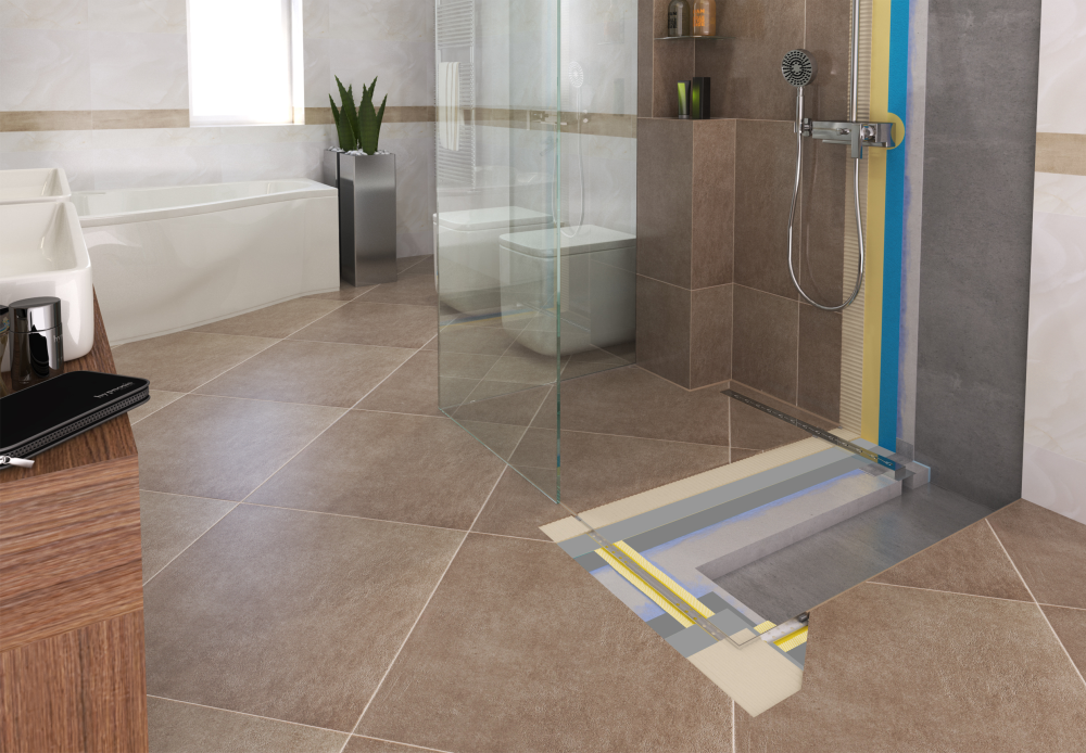 Az épített zuhanyzónál az egyik legfontosabb feladat a megfelelő (minimum 2 százalékos) lejtés kialakítása a padlóösszefolyó felé. A lejtés kialakításához az emelt minőségű Murexin AM 20 Kiegyenlítőhabarcs maximum 20 mm rétegvastagságig, a Murexin AM 30 Kiegyenlítőhabarcs 30 mm-ig vagy a Murexin AM 50 Trass gyors kiegyenlítőhabarcs maximum 50 mm rétegvastagságig alkalmazható. A Kiegyenlítőhabarcsok gyors munkálatokat tesznek lehetővé, hiszen 1-6 óra száradási idővel rendelkeznek, valamint könnyen eldolgozhatóak. A lejtéskialakítások mellett akár függőleges felületre is felhordhatók az egyenetlenségek kiegyenlítésére.