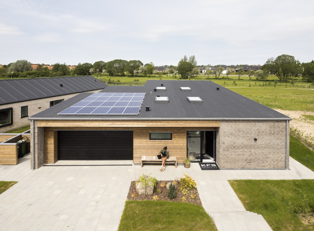 A ház tervezése során kiemelt szempont volt a fenntarthatóság: a tetőn elhelyezett napelemek és a megfelelő hőszigetelés kialakítása is hozzájárult ahhoz, hogy az épület megkapja az aktívház minősítést, a napfény szerepének erősítésével pedig minimalizálták a fenntartási költségeket. Ehhez olyan, kiváló minőségű nyílászárókra volt szükség, amelyek hőátbocsátási és fényáteresztő képessége is kiemelkedő. A KFS-Boligbyg Építésziroda a VELUX tetőtéri ablakok mellett döntött, mert, mint mondták, ezek széles válastéka és a skandináv dizájnhoz való illeszkedése segítette leginkább a kettős cél elérését: a napfény szerepének hangsúlyozását, valamint az energiafelhasználás optimalizálását.