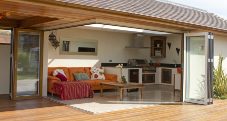 A Solarlux újdonságának lényege, hogy a sarkon át is teljes nyitottságot biztosít a kihajtható sarokoszlop révén, ha két, egymással szomszédos falon lévő harmonikaszerkezetet szeretnénk kialakítani, és ezzel a homlokzatokat teljes mértékben nyithatóvá tenni.