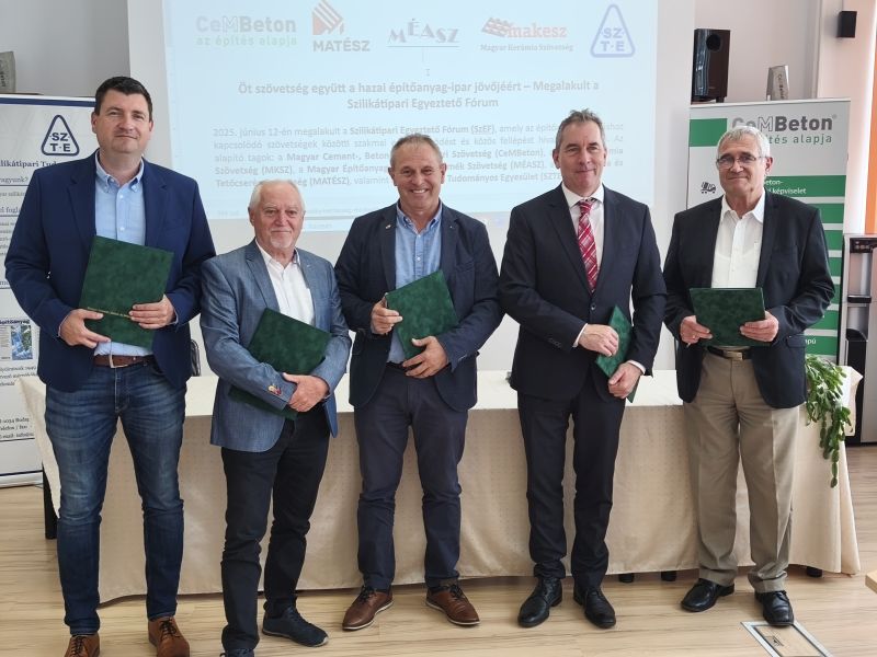 2025. június 12-én megalakult a Szilikátipari Egyeztető Fórum (SzEF), amely az építőanyag-gyártáshoz kapcsolódó szövetségek közötti szakmai együttműködést és közös fellépést hivatott erősíteni – derül ki a lapunknak is eljuttatott sajtóközleményből.. Az alapító tagok: a Magyar Cement-, Beton- és Mészipari Szövetség (CeMBeton), a Magyar Kerámia Szövetség (MKSZ), a Magyar Építőanyag és Építési Termék Szövetség (MÉASZ), a Magyar Tégla és Tetőcserép Szövetség (MATÉSZ), valamint a Szilikátipari Tudományos Egyesület (SZTE).