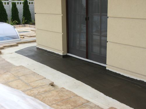 Az ilyen átgondolatlan felújítások csak ideig-óráig hoznak némi eredményt, azután ismét beázást okoznak. Ezt a teraszt csak teljes visszabontás után és új rétegekkel történő újra felépítéssel lehet rendbe hozni.