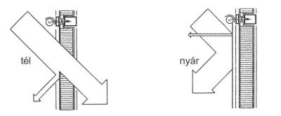 a) Az üvegfal működési elve téli és a nyári viszonyok között [3]