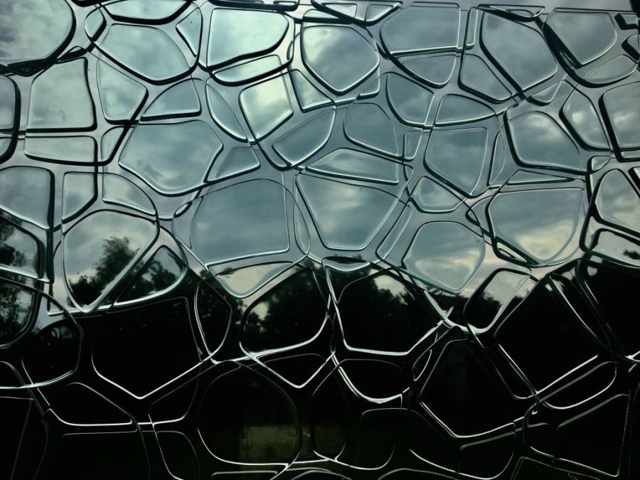A közép-európai régióban egyedülálló megjelenésű és technológiájú homlokzat valósult meg a Tópark ingatlanfejlesztés területén. Az üvegművész, Balogh Eleonóra munkája innovatív és különleges elemmel gazdagítja az épített környezetet.