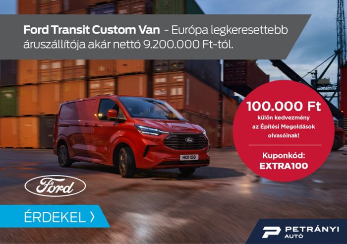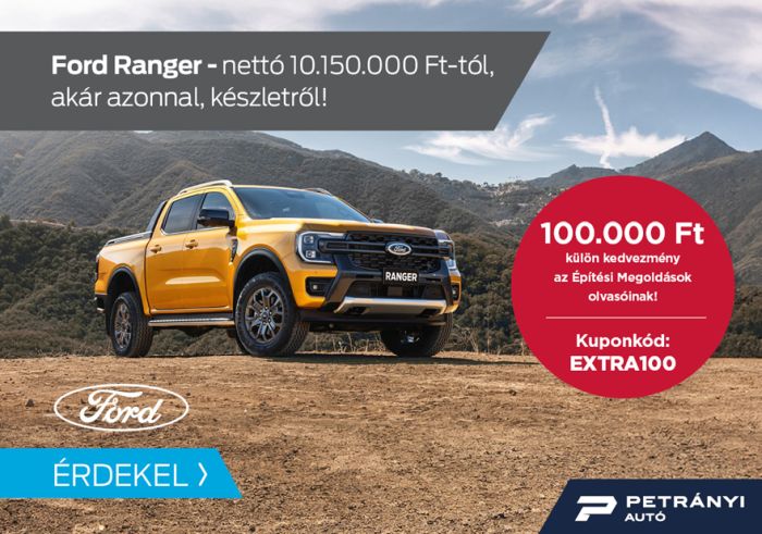 100.000 Ft külön kedvezményt biztosít a Petrányi Autó az Építési Megoldások olvasói számára!