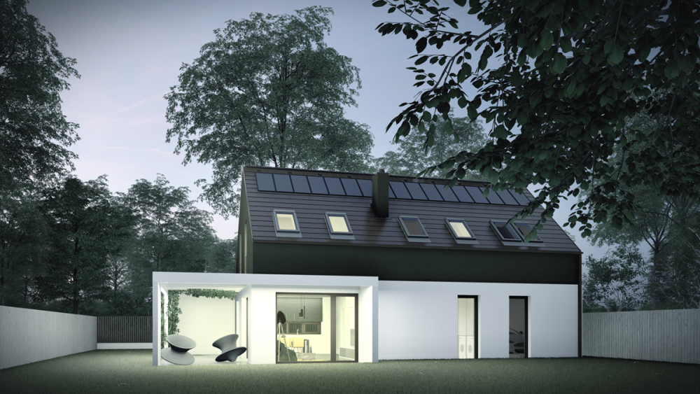 A tervezett épület vagy épületek a különböző beépíthetőségű telken vagy telkeken történő telepítését a tervezők többféleképpen képzelték el. Az épületek szoliter módon, ikresen, csoportházas vagy sorolt jelleggel is telepíthetők. A ház maximum 5 fős családnak ad otthont és egy, a mai világunkra jellemző home office-os lehetőséget is felkínál.