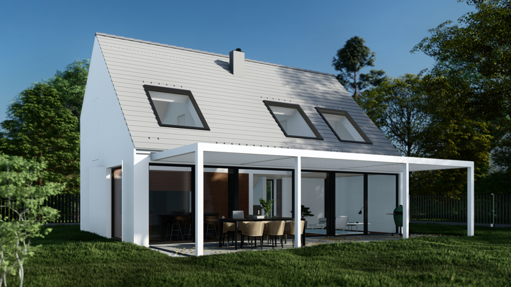 Ennek a háznak a megépítésénél gondolni kell a környezeti elemek szinkronizálására. A garázs, a kerti szerszámtároló, a kerékpártároló, a kerítés házhoz illesztésére.