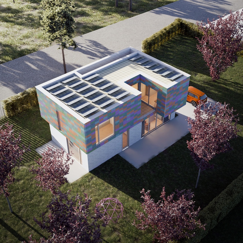 A lapostetős épület kedvesen, nagyvonalúan és bátran formált. Megjelenése egyedi, kortárs, szerkezet- és anyagválasztása kreatív. A nyílások árnyékolása, kiesés elleni biztosítása még megoldatlan. Elképzelhető olyan kertvárosi környezet, ahol ez a színes épület meg is találja a helyét.