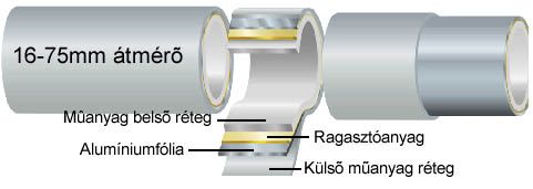 • belső műanyag réteg, mely össze van ragasztva az alumíniumfóliával (biztosítja a cső stabilitását, sima belső felülete megkönnyíti a kábelköteg becsúsztatását);