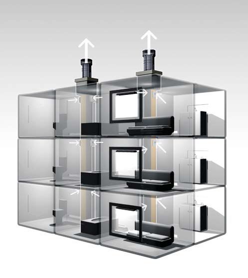 A VBP hatékony és energiatakarékos, egyenletessé teszi a szellőzést az épületszinteken, a helyiségekben folyamatos légcserét biztosít a nyári hónapokban és az átmeneti időszakokban is, és természetesen megakadályozza a visszaáramlást. Az alacsony működési nyomás miatt utólagos beépítés esetén a meglévő kürtők felhasználhatók.