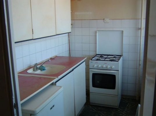 Egy budapesti, angyalföldi, négyemeletes panelházban szintén kis alapterületű konyhát alakítottunk át, ahová a megrendelő maximális helykihasználású, egyedi gyártású konyhabútort kért, amelyben korszerű készülékek, például mosogatógép is helyet kaphat.