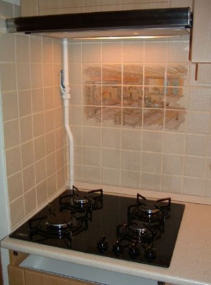 A megújult konyhai főzőeszköz, fölötte a szagelszívóval