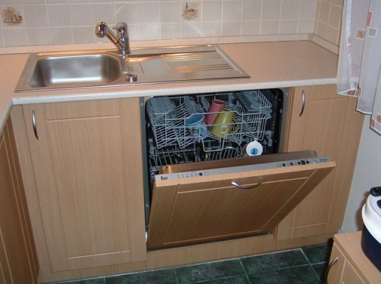 A mosogatótálca mellett a 12 terítékes mosogatógép is remekül megfér egy panelkonyhában