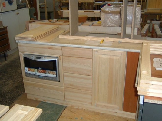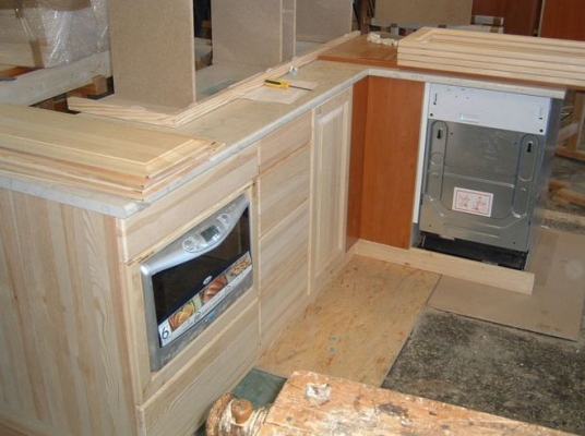Egy Budapesthez közeli családi ház konyhájának felújításakor a megrendelő előzetes tervei alapján egyedi méretű, fából készülő, polírozott, lakkozott felületű konyhabútort kellett készítenünk.