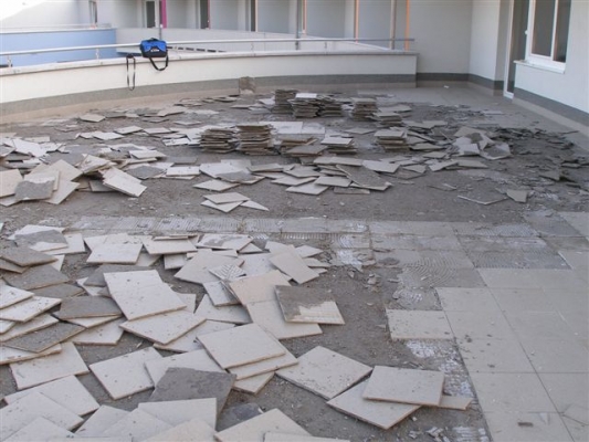 4. A járólapok kopogását okozhatja a szükséges várakozási idők figyelmen kívül hagyása, így friss, nem kellően érlelt betonra kerül a burkolat. (Kellően érleltnek akkor nevezhető a beton, amikor a kötési és szilárdulási folyamatok már lezajlottak – ez normál portlandcement esetén minimum 28 nap –, illetve ha a száradási és zsugorodási folyamatok véget értek – az erre vonatkozó ökölszabály: az esztrich érlelési ideje 5 cm vastagságig 1 hét/cm, 5 cm vastagság felett minden centiméter esetén további 2 hét/cm.)