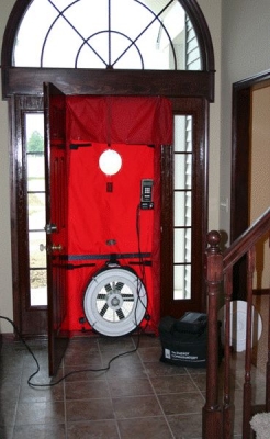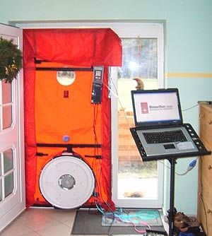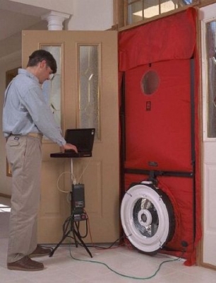 A BlowerDoor készülék az épület külső és belső tere között akkora nyomáskülönbséget hoz létre, ami természetes körülmények között 30 km/h szélsebességnél alakul ki, és azt méri, hogy a létrehozott légritka belső térbe óránként mennyi levegő áramlik be.