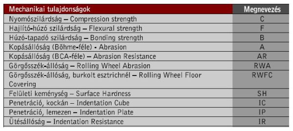 Egyébként főleg a tervezőknek nyújt nagy segítséget az MSZ EN 13813 szabvány, mert számszerűsített lehetőségeket (kategóriákat) kínál fel, mint pl. a különböző hajlító-húzó szilárdsági, nyomószilárdsági, kopásállósági, felületi húzó-tapadó szilárdsági stb. osztályok.