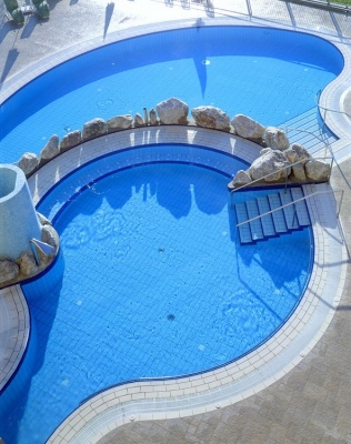 A medencék környezetének kialakítására finom kőporcelánból készülő, teljes anyagában színezett, mázatlan, csúszásgátló burkolat szolgál. E termékek is az egyéb medenceburkolatokkal azonos formátumban és széles színválasztékban állnak rendelkezésre.