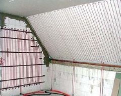 A nedves csőfektetési eljárásnál a cső külső fala és a rabicháló között 2 mm, a háló fölött 8 mm vastag vakolat készítése ajánlott. A padlófűtésnél alkalmazott betonréteg ajánlott vastagsága 10 cm, ebben helyezkedik el a fűtéscső. A cső elhelyezésénél törekedni kell arra, hogy a cső tetejére minimum 5 cm betonréteg kerüljön. Célszerű először az aljzat betonozását elvégezni, ezáltal elkerülhető, hogy a lefektetett csövek később sérüljenek.