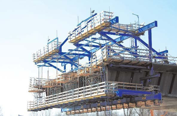 A szegedi extradosed (azaz a vasbeton híd a keresztmetszeten kívül ferde kábelekkel feszített) mederhíd kereszttartóval merevített, trapézlemez bordájú, háromkamrás hídszerkezetét 5 méter hosszú, 25 tonnás egységekben szerelték össze és emelték a zsaluzókocsikba. Ez a Doka számos helyen már alkalmazott szabadon betonozó zsaluzókocsijának egyedi alkalmazását kívánta.